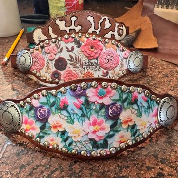 Our bronc nosebands are hand crafted to meet your specific needs. Your choice of shape and style.